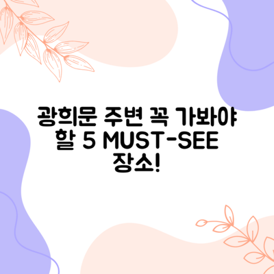 광희문 주변에는 반드시 방문해야 할 사진 명소가 여러 군데 있습니다. 예를 들어, 광희문 자체는 역사적인 배경 덕분에 아름다운 사진을 찍을 수 있는 장소입니다. 또한, 인근 카페에서의 커피와 함께 광희문을 배경으로 한 사진도 매력적입니다. 이런 장소들은 풍부한 배경과 분위기를 제공해 멋진 스냅샷을 남기는 데 큰 도움이 됩니다.